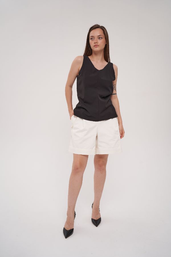 Топ черный и шорты молочные