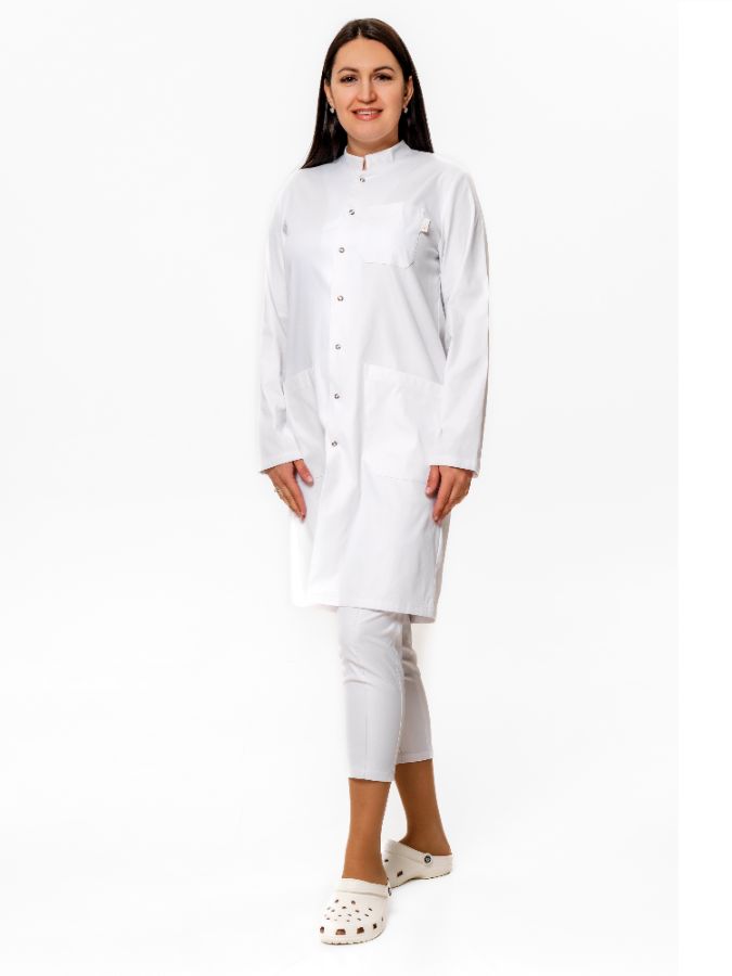 Халат классический медицинский/сервисный/HoReCa унисекс с воротником типа "стойка"