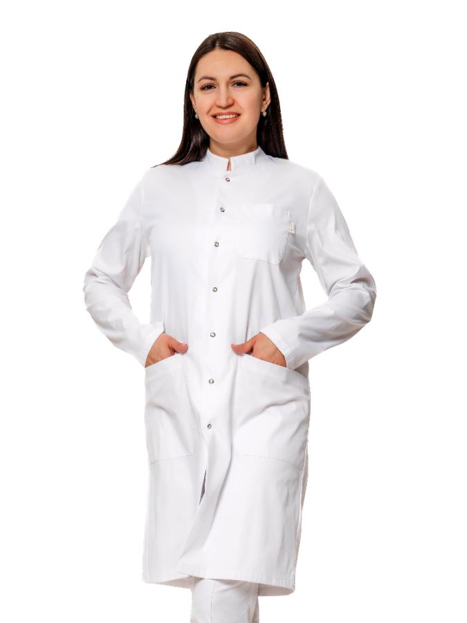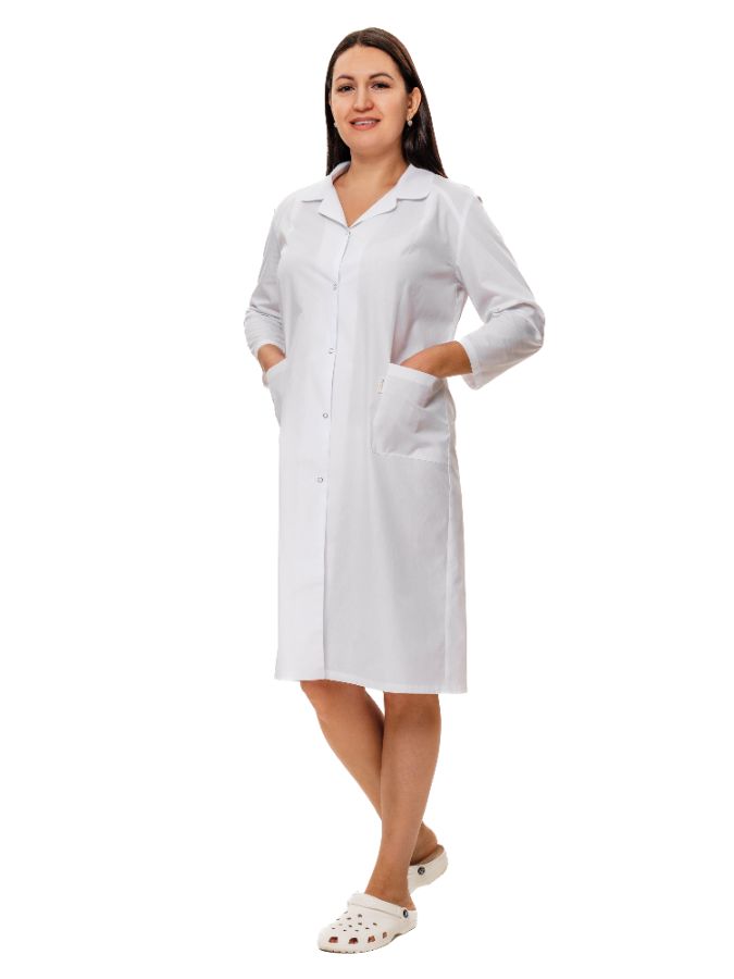 Халат медицинский/сервисный/HoReCa женский, с закругленным отложным воротником